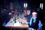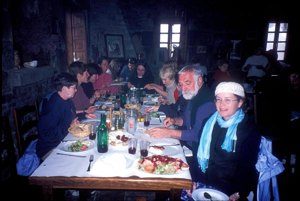 My last Camino update was sent from Ponferrada, Spain on the first of May. I was hoping to find my Canadian friends and then try to get back to the states. I was partly successful in those aims though my ultimate return to the US would have to wait till the 15th of the month as I had originally arranged. Things did not always go as I was envisioning them. But as with much of this journey, I seemed to get what I needed rather than what I wanted. And my last two weeks in Spain and France were no exception. The day after my last message I began my quest to find my friend Derek and the group he was leading along the last 100 miles of the Camino. My recollection of their schedule had them in Leon on the first or second of May and then in Villafranca from where they would begin their walk. So my walk on the second would take me to the Ave. Fenix alburgue in Villafranca where I hope the two Canadian girls I had met on my first time through that town would be able to offer some information about my friends. Getting back on the Camino and walking again along the route I had traveled 8 or 9 days before was an interesting experience. I was off once again at first light threading my way through the narrow streets and out through the park along the river. As I walked I was amazed at some of the things that would jump out at me – funny recollections of things seen before that bubbled up from my memory when re-visited. In addition to the usual scenery and town landmarks a bunch of almost forgotten details made a second impression as I walked along. In a shop a set of bright red bolt cutters reminded me that I had looked into the same window when I passed before. The same happened when I passed a narrow nondescript alleyway peered into on both passages. A banana peel dropped from the side of a bridge lay black and slowly decaying into the grass where it had settled. And there were new things also, things missed on the first time around - the patterned rows of young grape vines climbing up a hillside to merge with the sky, a pond filled with the spring croaks of frogs, and new blossoms burst open along the Camino. At 11 am I arrived at Ave. Finix and found Naia and Mandolin. Here I learned that Derek and troupe had been there two nights previous. I had been wrong about the date of their arrival. So I was in a bit of a quandary. I’d already walked about 24 kilometers and it was still another 20 to Ruitelan where I guessed they had spent the last night and another 10 uphill kilometers beyond that to O Cebreiro the hilltop village they would probably pass through sometime during the day. If I had arrived in Villafranca 15 minutes earlier, I could have had a ride all the way to O Cebreiro with one of the staff who was ferrying packs up to the top for some of the previous nights guests that preferred to do the long 3000 ft climb without carrying the extra weight. After chatting with the Canadian girls, I decided it might be possible to hitchhike up to O Cebreiro and possibly catch Derek’s group before they continued down the mountain. I walked through town and started up the road with hopes of getting a ride. But that was not to be. Traffic was very light and the road both narrow and bordered for much of its length with Jersey type concrete barriers that made it almost impossible for a vehicle to stop safely. So I just kept on walking occasionally putting out my thumb and wondering if that even was the Spanish sign for wanting a ride. As the day and I marched on, my hope of finding Derek began to wane. Eventually I arrived in Ruitelan, back at the Pequeño Patola where Carlos had treated me so well on my first visit. I reintroduced myself and inquired if Derek and friends had been there the night before and when they might have left. From Louis and Carlos in a combination of English and Spanish I learned that they had indeed spent the previous night there and had left after breakfast. How far they intended to walk that day or where they were planning to spend the night were not known. I next asked if there was anyone in the small village who might be able to drive me up to O Cebreiro. It seemed that my only hope or catching them would be to get at least that far and then see what happened. After some discussion Louis agreed to drive me the 6 or 7 miles up the mountain and he also knew what the support vehicle Derek was driving looked like. But O Cebreiro was as far as he could take me since he had other things to do back at the alburgue for the new guests who were already arriving. I tried to determine what my next move would be once I got to the top of the mountain. My best guess was that Derek and company would have stopped for lunch and then moved on. My options seemed to be stay the night there and try to catch up in the morning or push on immediately and hope to find them before nightfall. I put my thoughts on hold and decided to wait till O Cebreiro to make a decision. And then a most amazing thing happened. When we pulled into the small village that is mostly a touristy Camino stop, Carlos jumped out of the car to check a small parking area on the chance that the car might be there. In two minutes he was back saying that yes, Derek’s car was in O Cebreiro and two minutes after that I was meeting the first of the group of 11 that were the Canadian Perigrinos. My relief was overwhelmed by an incredibly warm welcome from my new found friends. Vivica and Donna showed me the way to the local alburgue where I found a bunk in the same room with most of the group. Over the next hour or so I slowly met the others who were out wandering about the village and finally had a warm reunion with Derek who I met on the path between the hostel and the village. For the next two days I enjoyed the warm companionship of the group that I had originally intended to walk with when I first responded to Derek’s Camino trip back in the fall of 2003. They welcomed me immediately into their circle and I got to experience